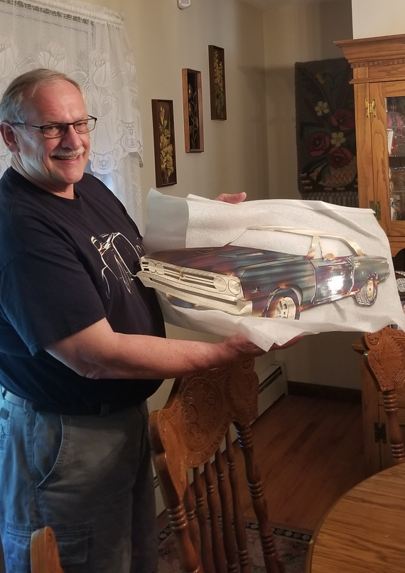 We made this as a birthday gift. Classic cars are an emotional possession for a lot of people. I think you can tell how he felt about receiving it from the picture.