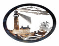 A lighthouse shines it's beam, lighting the way for travelers near and far in this inspiring oval metal wall art design.