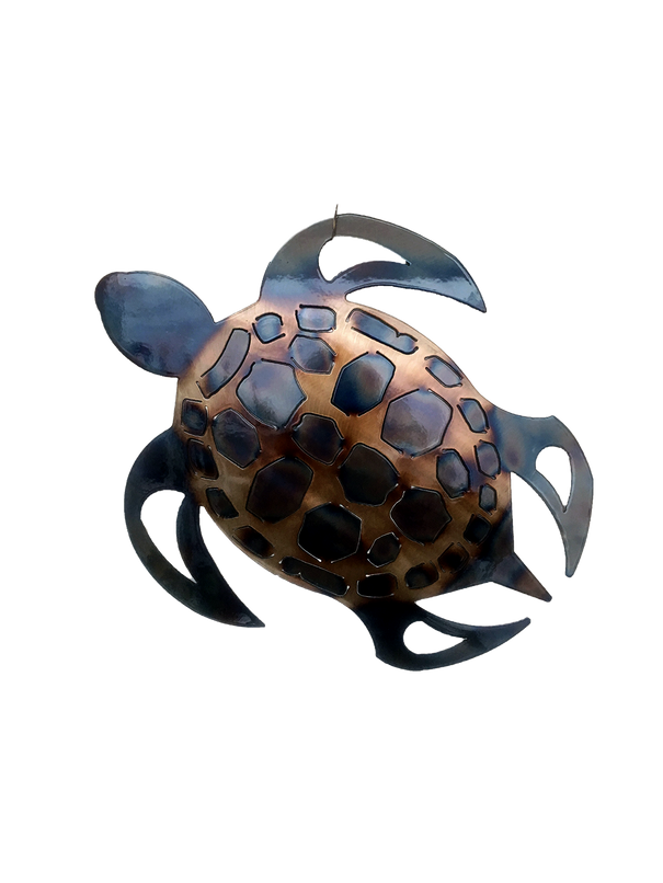 The long-lived sea turtle stands for patience and endurance in this ocean-themed design for a unique metal wall art. This is the "shellback" design. See our other Sea Turtle Wall Art design.