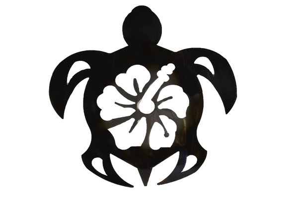 The long-lived sea turtle stands for patience and endurance in this Lotus flower and ocean-themed design for a unique metal wall art.
