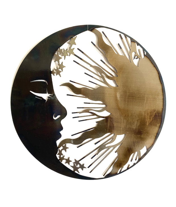 This Sun and Moon wall art is a unique wall art. Made with 18-gauge steel it has the weight and rigidity of quality but is still light enough to hang easily.