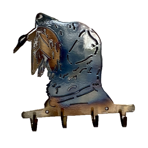 Your Labrador proves his devotion yet again retrieving this duck for you in this design on a metal 4-hook key rack.