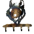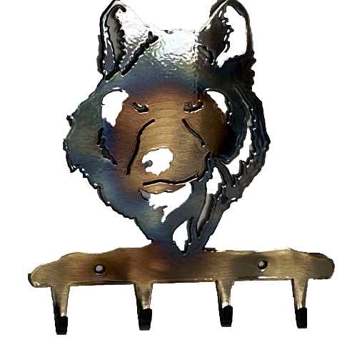 Show off your spirit animal with this commanding wolf head metal art design for a 4-hook key rack.