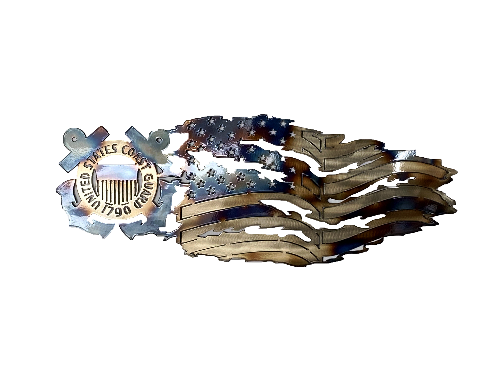The Coast Guard is an incredible Service. They save lives everyday with courage and compassion. This Coast Guard Handmade Metal Wall Art with tattered flag is a great symbol to honor their service.