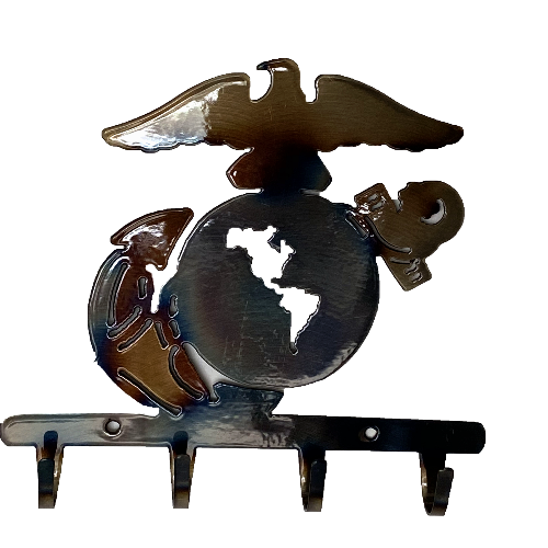 Show allegiance to your favorite branch of service with this US Marines handcrafted metal art design 4-hook key rack.