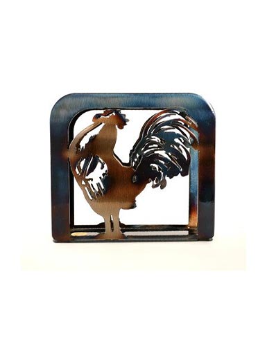 A take-charge rooster crows proudly come the dawn in this barnyard-inspired design for a large napkin holder.