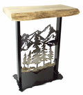 This table is a steel base with a natural edge Walnut top and a polyurethane finish. The scene is held on with strong magnets making it interchangeable so you can easily customize the table and change the scene to fit a changed environment or mood. The current designs are shown but we can fit any of our existing wall art designs.