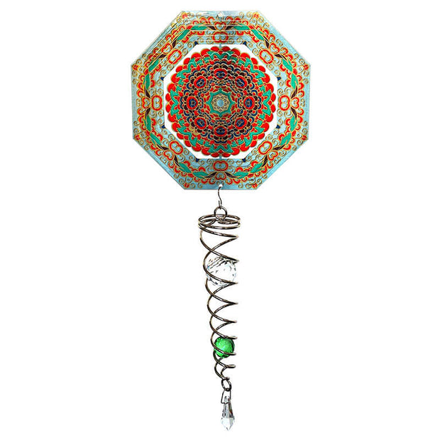 The Mandala Octagon Wind Spinner Tail features bold colors and a unique shape. All of our new wind spinners reflect light from the surroundings. As the wind turns the spinner with tail, the tail will also turn producing stunning optical illusions with the matching crystal balls. Watch as the light flickers through all the layers resulting in an amazing ripple effect across the spinner. Hang this Wind Spinner in your garden where it will spin naturally in the wind, or if in a calm area, use one of our solar powered motors, or a battery motor indoors.