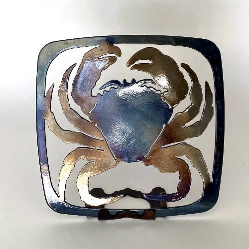 A classic crab centers this shoreline-inspired design for a trivet. This metal art piece is...