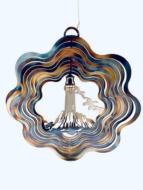 Brighten up your garden or porch with a beautifully hand crafted metal wind spinner. These unique pieces are a 3D design that catches wind and the light from all angles. When the sun hits them they sparkle!